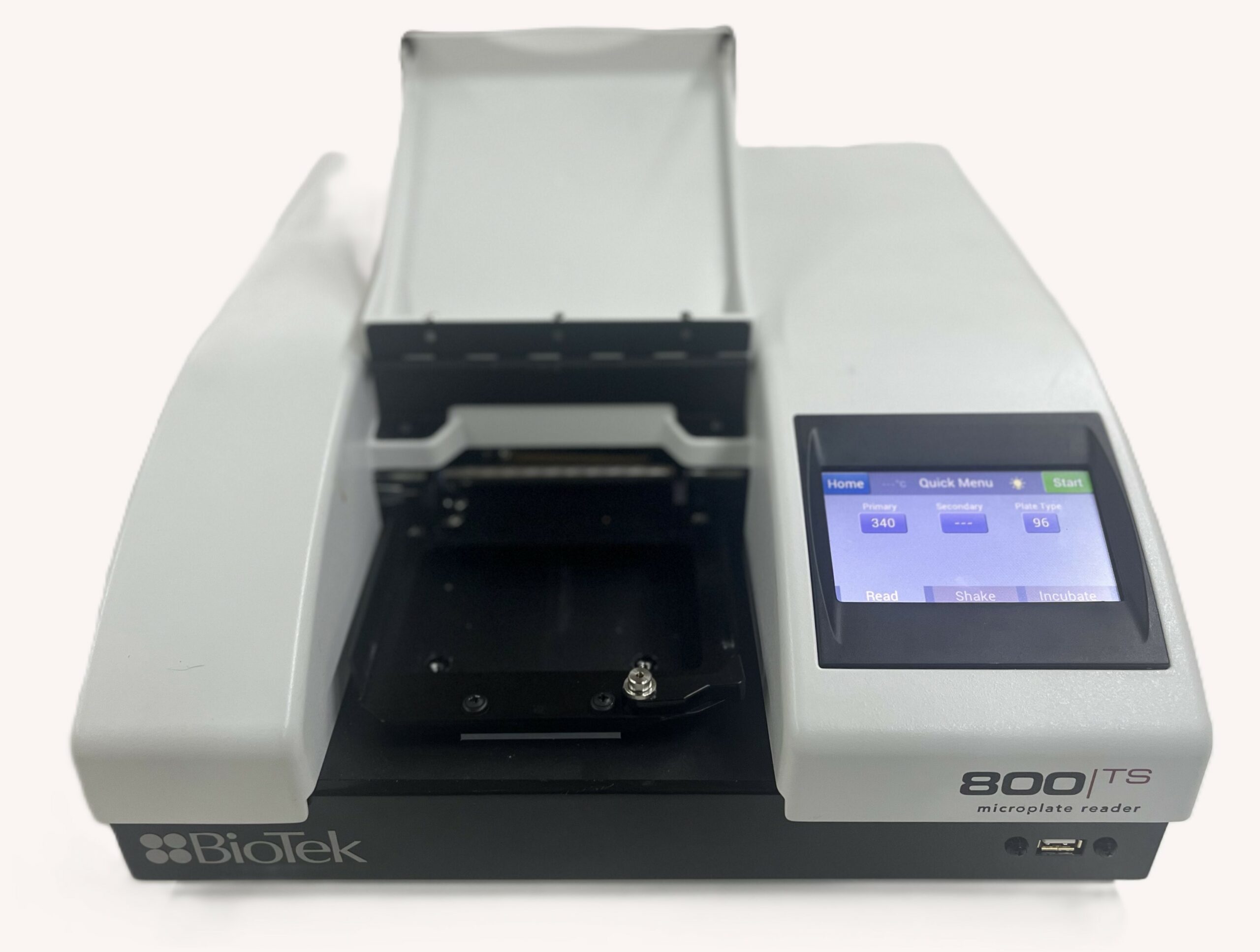 Contamos con el lector de microplacas BioTek 800 TSUVI, mide absorbancia UV-Visible (340-750 nm) en placas de hasta 96 pozos, con control de temperatura hasta 50 °C y agitación programable. Permite ensayos de punto final y cinéticos con alta precisión, aplicables en ELISA, análisis enzimáticos, proteínas, citotoxicidad, viabilidad celular y microbiología.